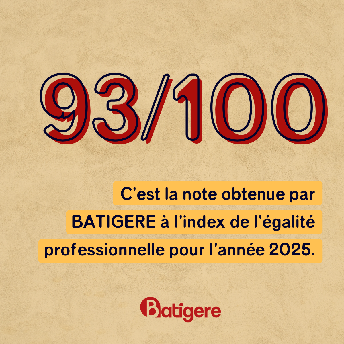 - Index égalité entre les Hommes et les Femmes de 93/100 pour l’année 2025.